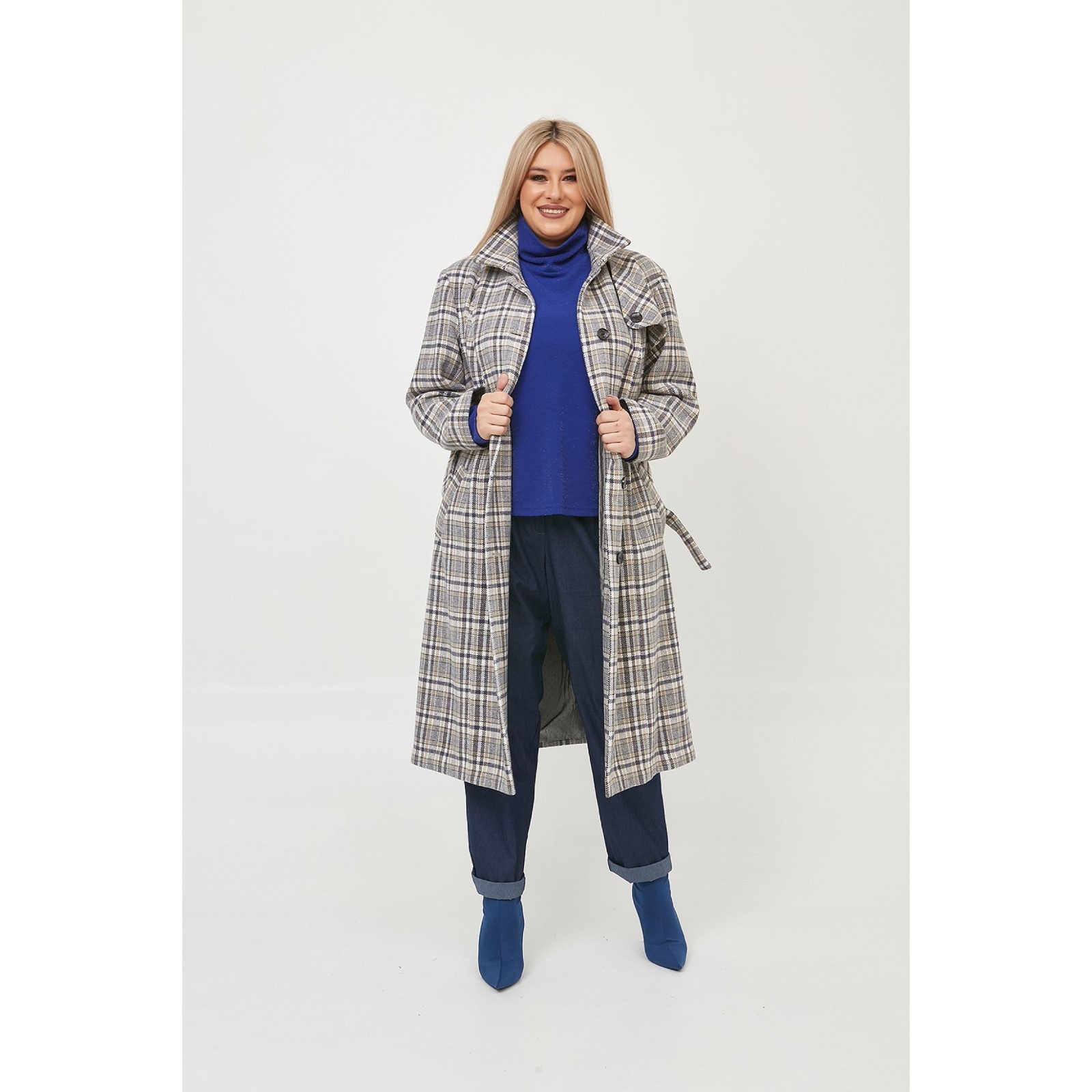Пальто голубое в клетку