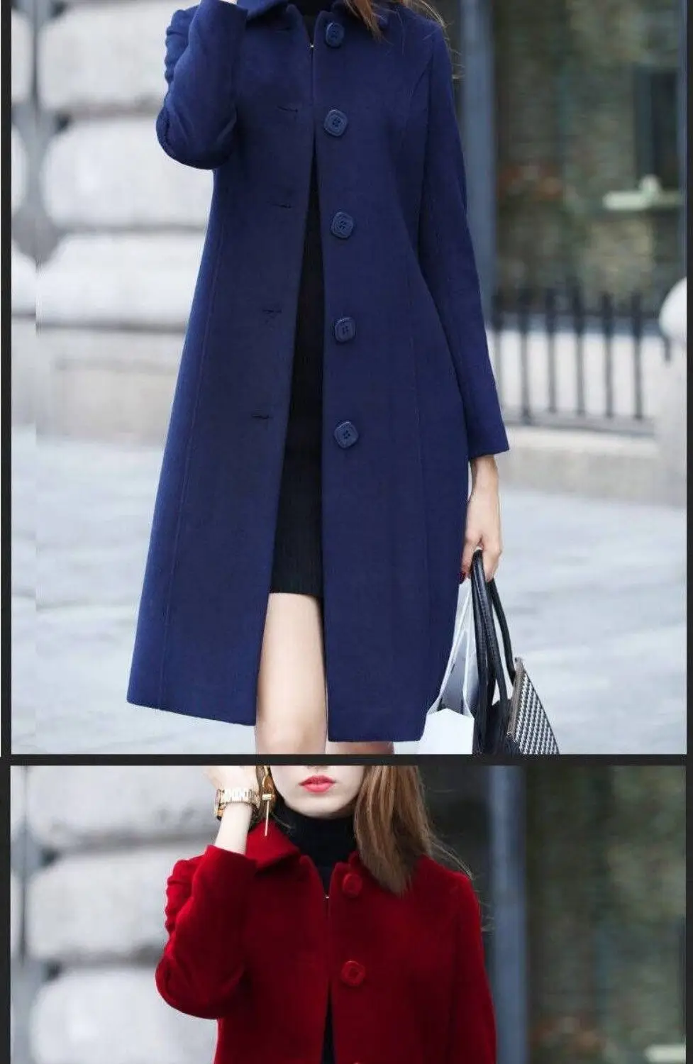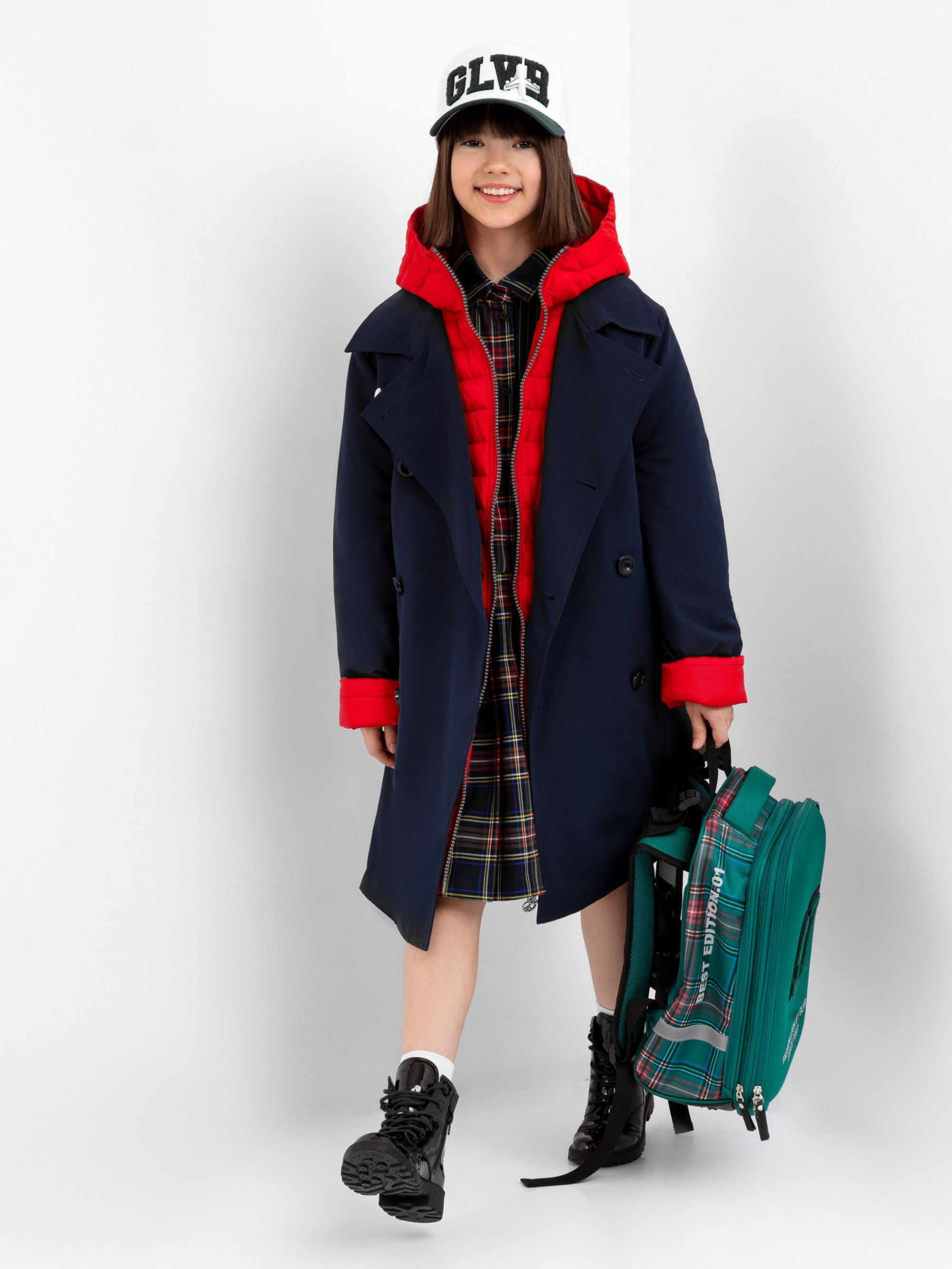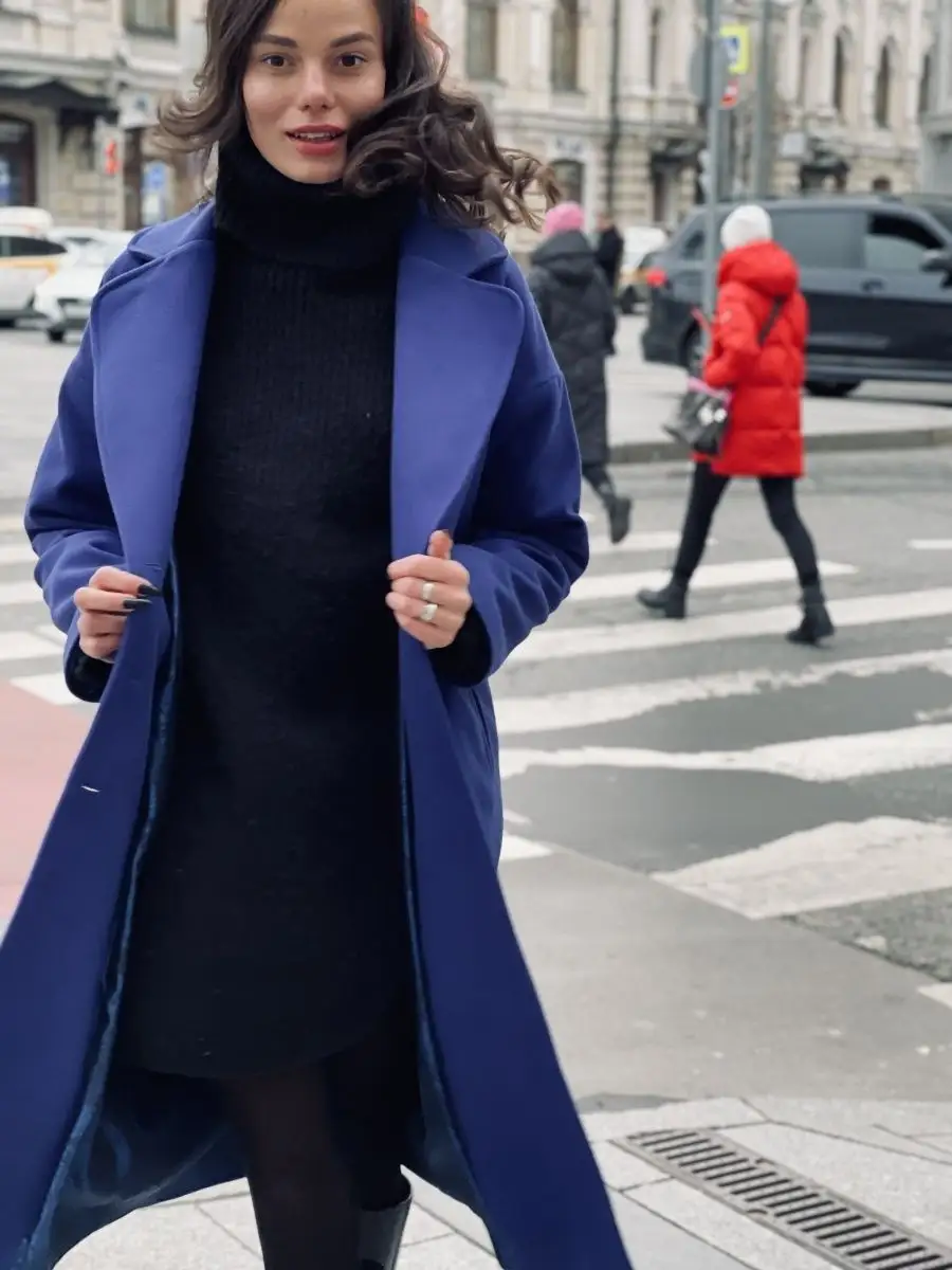Пальто синее с красным 86 фото