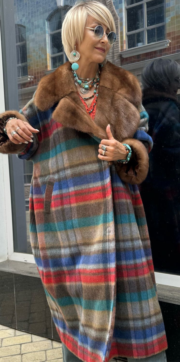 Пальто синее с красным