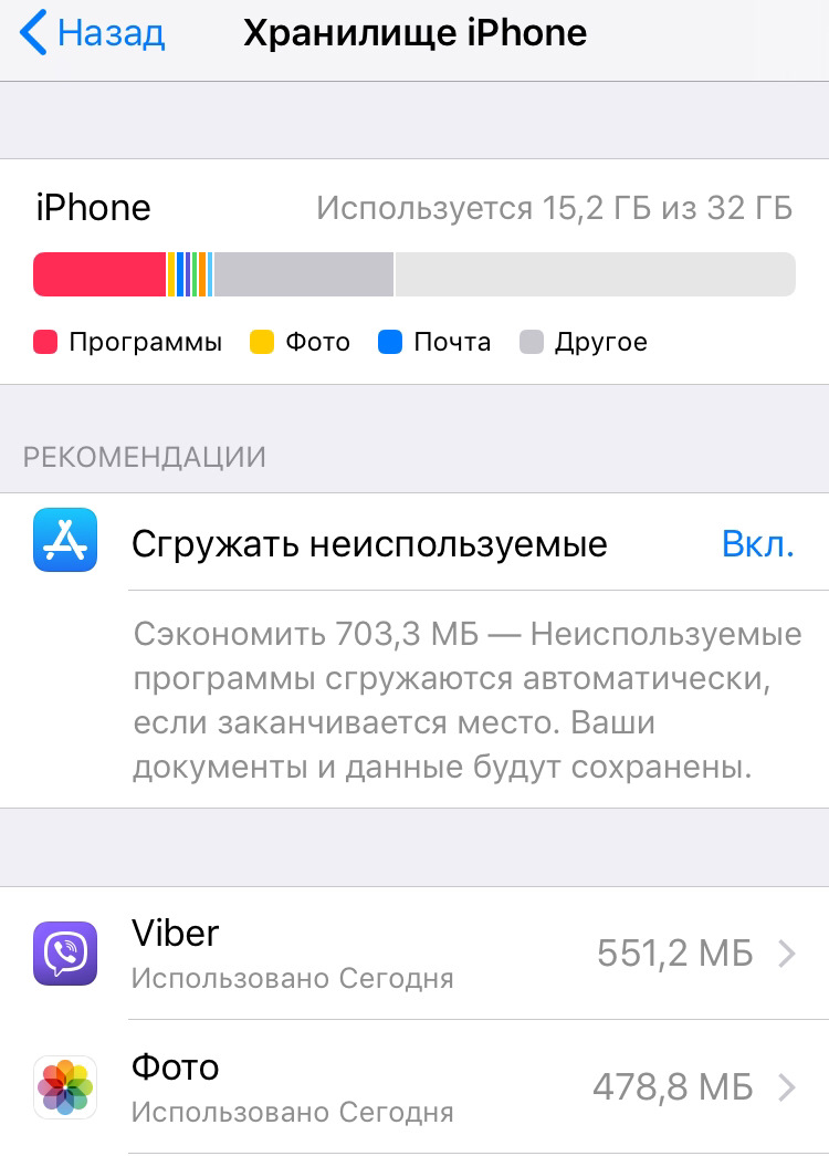 Память iphone заполнена