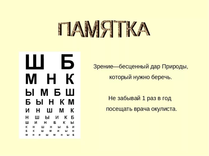 Памятка как беречь зрение