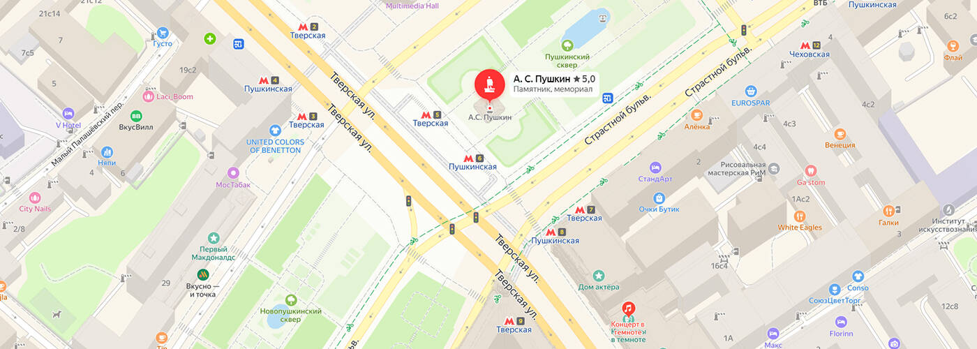 Памятник пушкину на карте