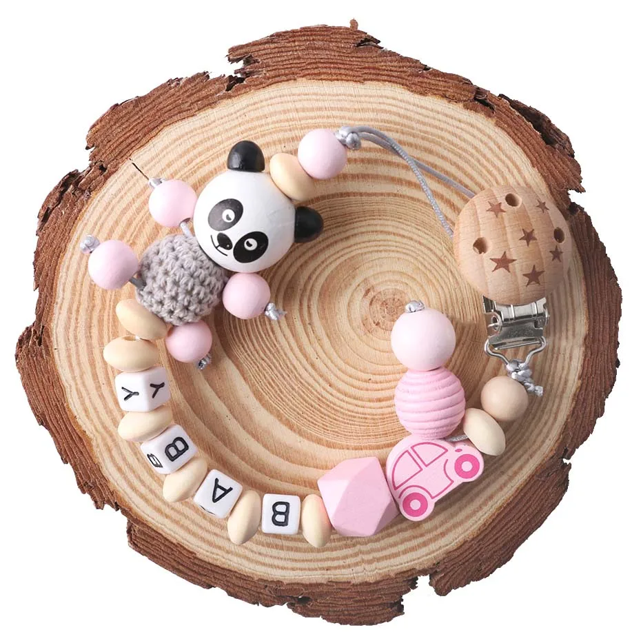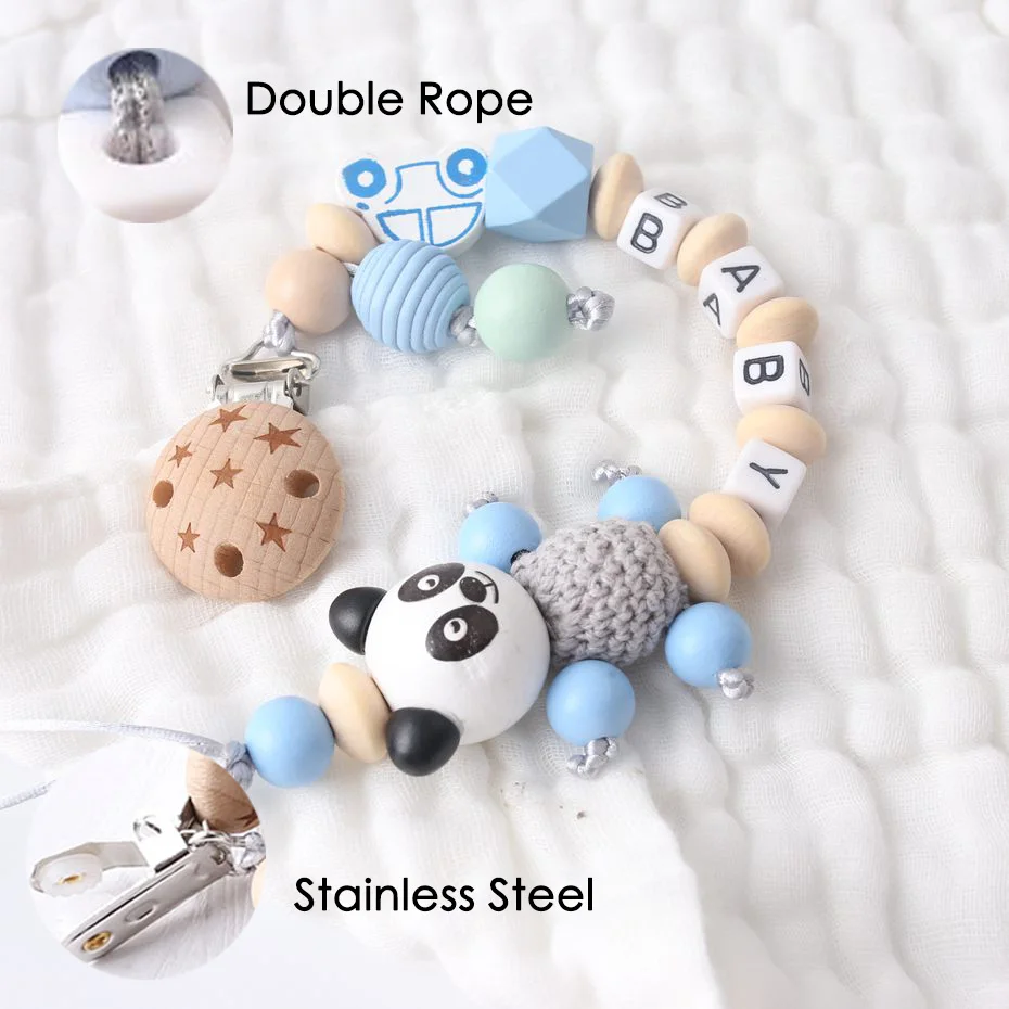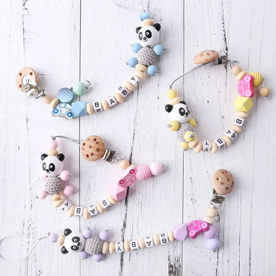 IzlhMZmfHere you can buy Panda Pacifier Chain Personalized Name Beech Wooden Clip Teether Cartoon Panda Holder Chain Rodent Baby Teether For Gift with free delivery to your post office.