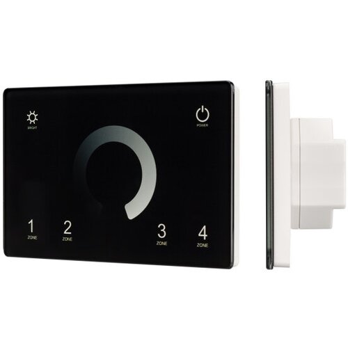 Dahili dokunmatik panel 2,4 GHz, siyah. İtalyan standardı. Malzeme - cam. Tek renkli ışık kaynaklarının (PWM) kontrolü için 4 kontrol bölgesi. DMX512 cihazları için kontrol fonksiyonu. Güç kaynağı/çalışma voltajı AC 85-265V. Boyutları 120x80x37 mm, standart priz kutusuna monte edilir. Panel SMART serisi dimmerlarla uyumludur.