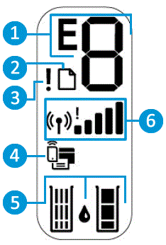 Индикаторы панели управления и состояние значков на экране принтера HP DeskJet -4729 Индикатор кнопки Характеристики . Состояние . Описание . Светится . Принтер включен . Выкл . Питание принтера . . .