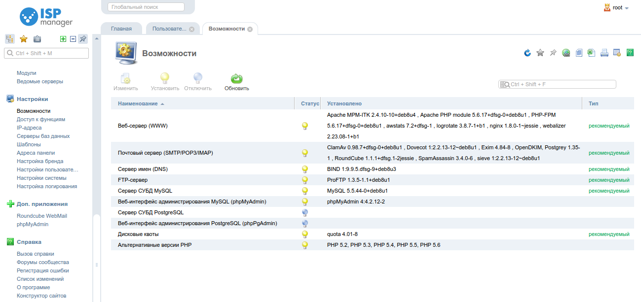 Панель управления ispmanager 116 фотографий