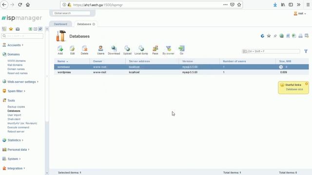 Панель управления ispmanager