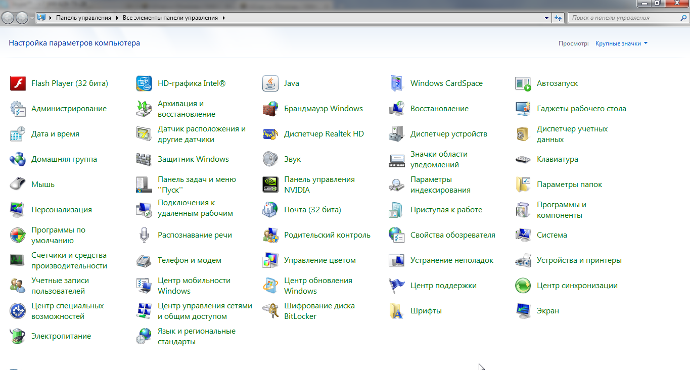 Панель управления в 15