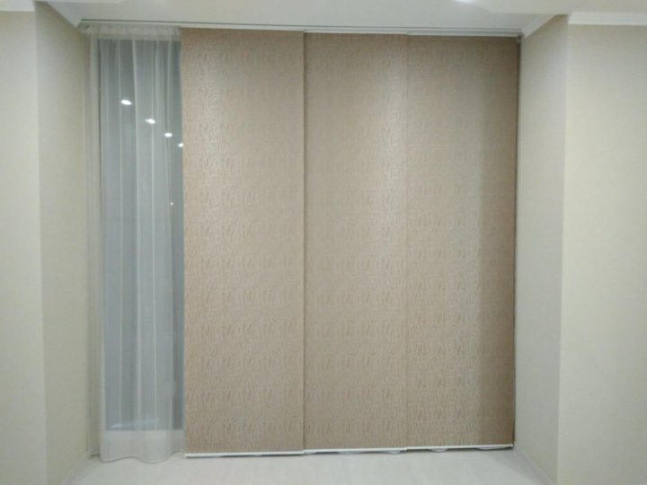 Панельная штора - идеальное решение для больших витражей, там, где минимум мебели и максимум пространства, а витражи имеют высоту более 2,5 м ., лучше всего установить панельные шторы .
