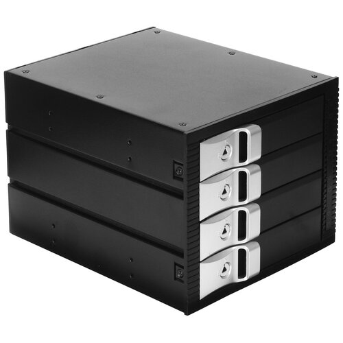 Type : Panier. Connecteur(s) : SATA. Informations complémentaires : indicateurs d'alimentation et d'activité du disque dur. Matériau : acier, plastique. Système de refroidissement : oui. Baies 3,5" : 4.Objectif : Panier pour connecter des disques durs 3,5" remplaçables à chaud Nombre de paniers 3,5" : 4 Interface : SAS/SATA I/II/III (6 Gbps) Installation dans la baie : 3 x 5,25" Ventilateurs de refroidissement : 2 x 4 cm Connecteurs : SATA 7 broches : 4 SATA 15 broches : 4 IDE 4 broches petit type : 4 Tension, V : 12 Indicateurs LED : Indicateurs d'alimentation, indicateurs d'activité du disque dur Câbles inclus Adaptateur SATA 15 broches (M) - 2 x (SATA 15 broches ( F) + 2 x IDE 4 broches petit type) : 2 Câble d'interface Périphériques SATA : 4 Sécurité : Verrouillage des paniers ; 2 clés incluses Prise en charge du remplacement à chaud des disques durs : Oui Prise en charge du système d'exploitation : Windows 98/SE/ME/2000/XP /Vista/8.1/10 ; Mac OS 9.0 ou version antérieure ; LinuxCouleur : NoirMatériau : Acier, plastiqueDimensions (L x L x H), mm : 195 x 148 x 127Poids, g : 1 582