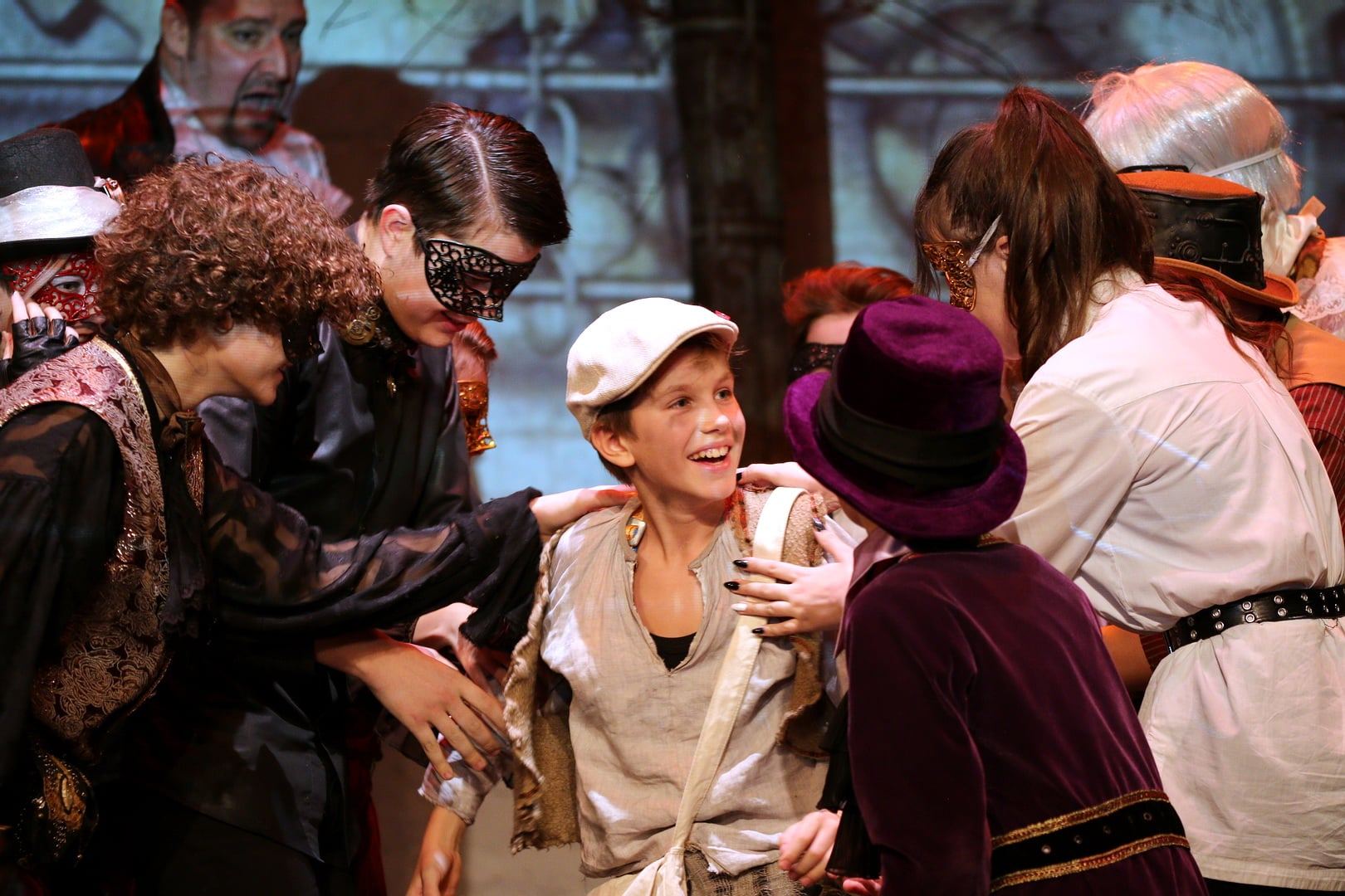 острый нос . с Пьеро . с папой Карло . Буратино . испуганный мальчик .