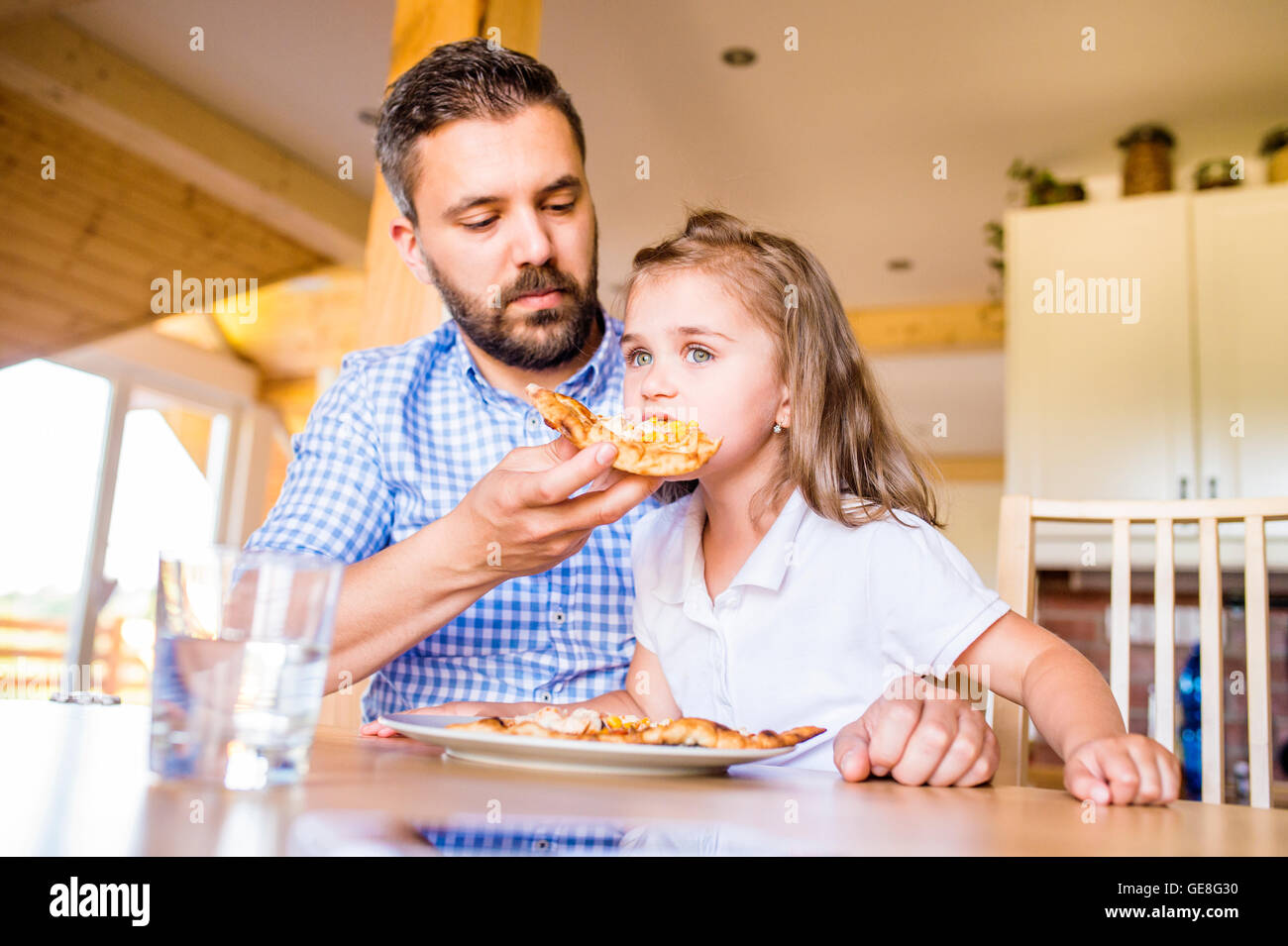 Папа кормит дочку