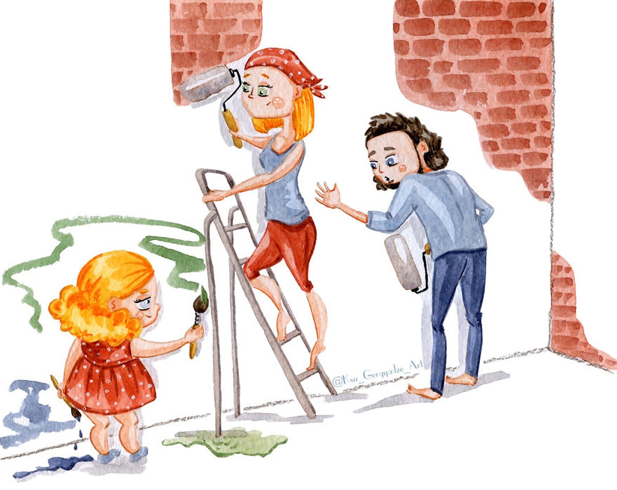 Папа шлепает дочку