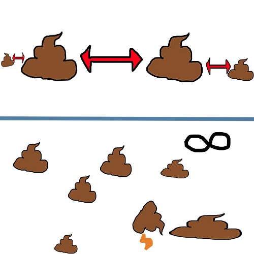 Если вы случайно насрали две кучи дерьма возле вашего товарища, который люто негодует из-за целых двух куч говна, то в любой момент легким движением руки из двух куч можно сделать одну.