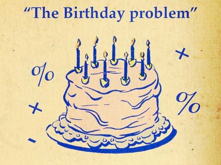 Представьте, что вы и еще 22 человека находитесь в одной комнате. Какова вероятность, что хотя бы у двух человек из комнаты дни рождения приходятся на один и тот же день?