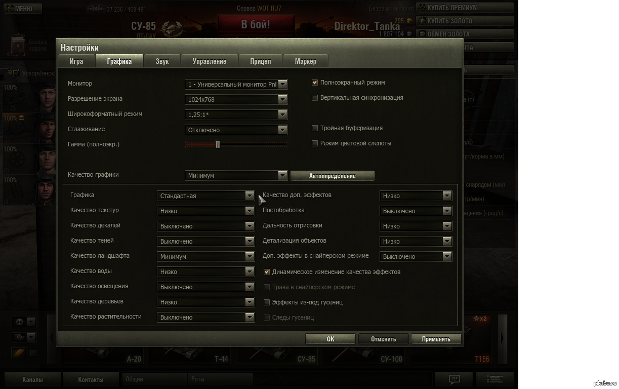 Параметры игры танки
