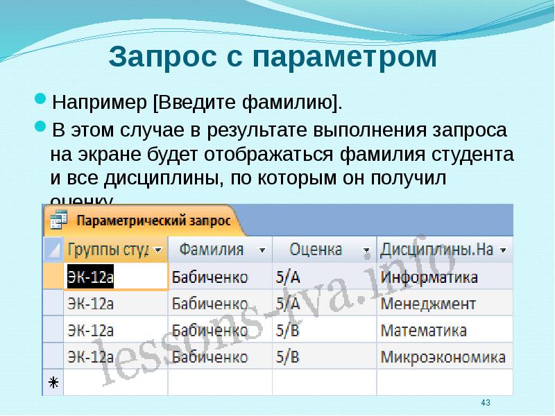 Параметры запроса