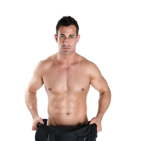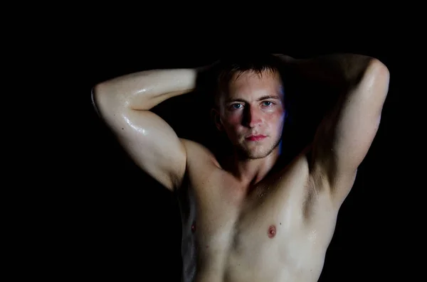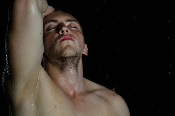 Молодой красивый сексуальный обнаженный мужчина в душе