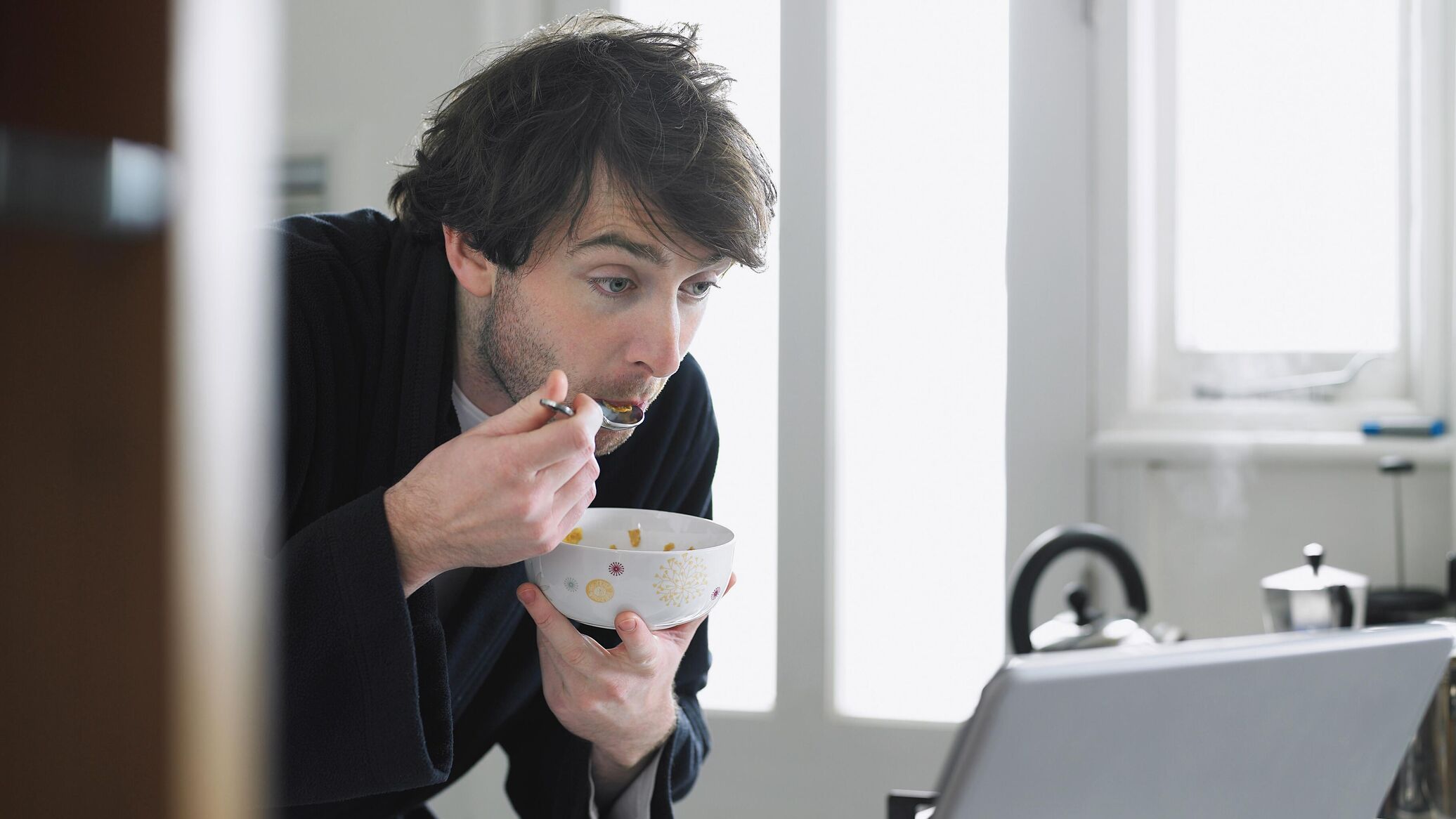 Парень ест на камеру