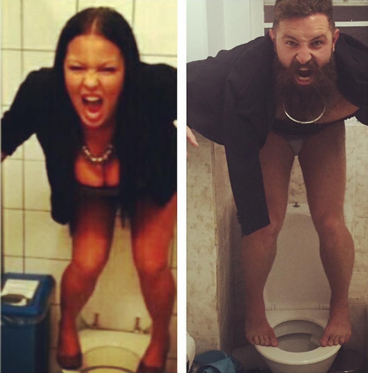 Парень копирует девушек