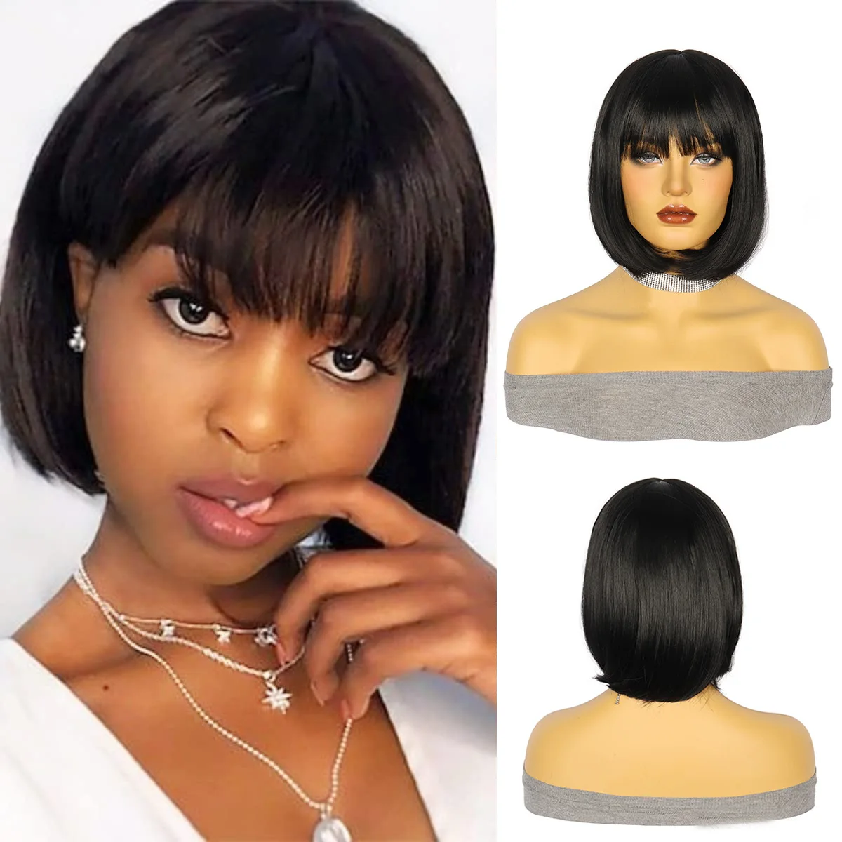 Парик черный короткий