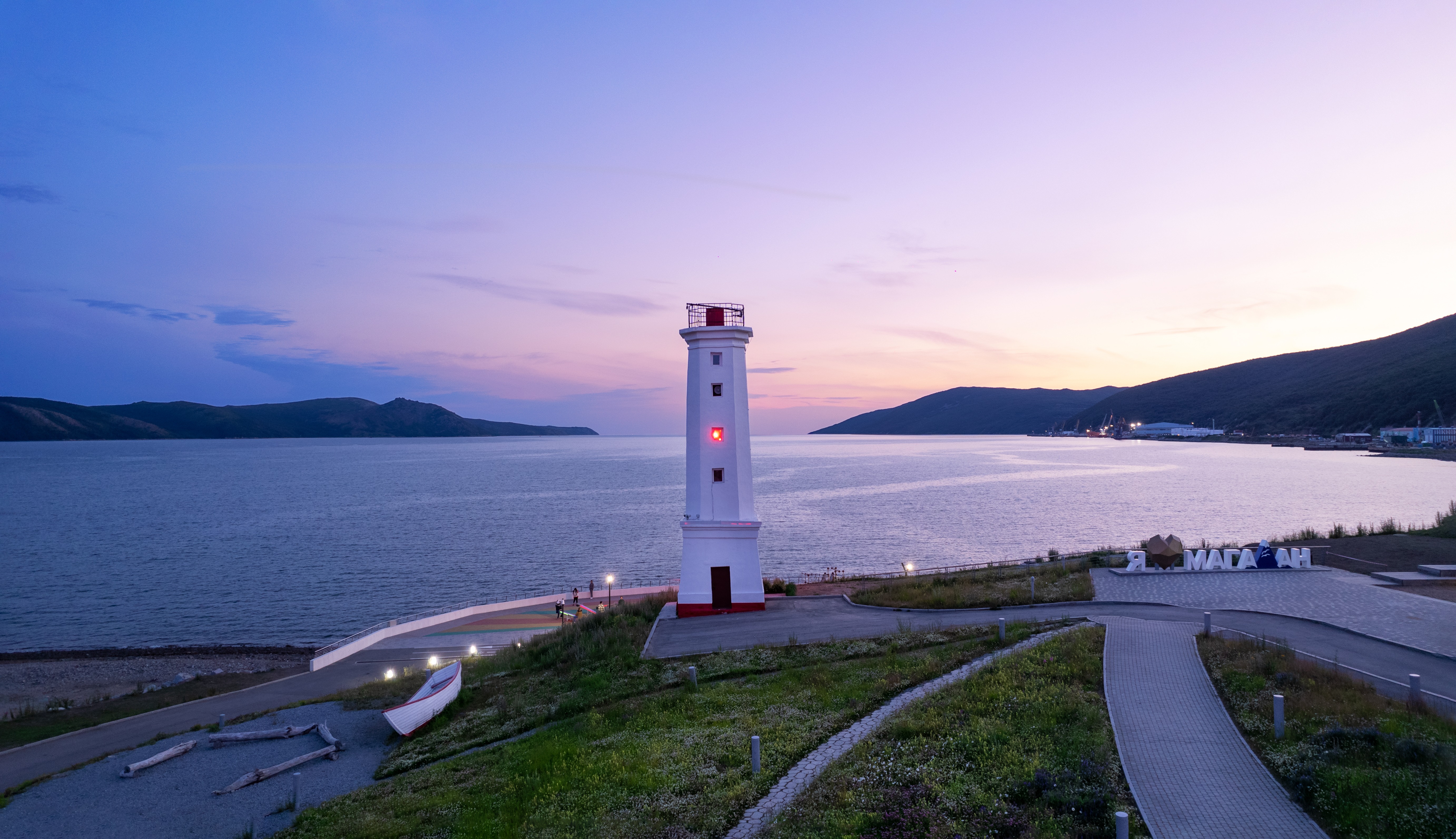 Набережная, тянущаяся от маяка до сквера «Морского», названа в честь белых ночей, которые можно наблюдать летом в Магадане. Это идеальное место для комфортного отдыха: беговые и велодорожки, уединенные скамейки и игровые площадки для детей создают атмосферу уюта. На конце набережной вас встретят впечатляющие скульптуры косатки и знаменитого магаданского мамонта.