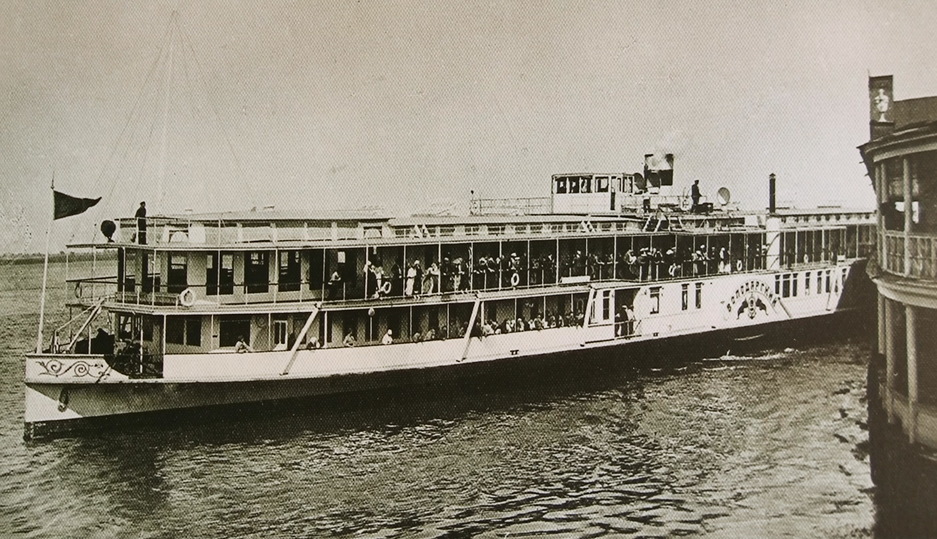 Пароход «Меркурий» (на втором плане) . На первом плане речной пароход «Надежда» Одним из таких судов стал пароход «Меркурий» под командованием капитана К .И . Смоляренко, о котором и пойдет наш рассказ . 2 июня 1916 года в 8 ч 02 мин утра он отошел от пристани в Одессе в свой обычный рейс для следования в Херсон .