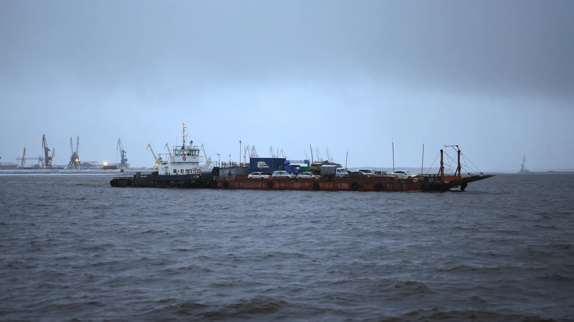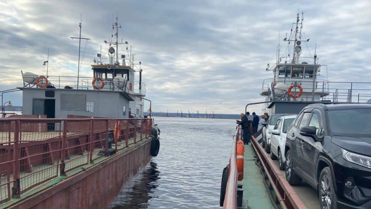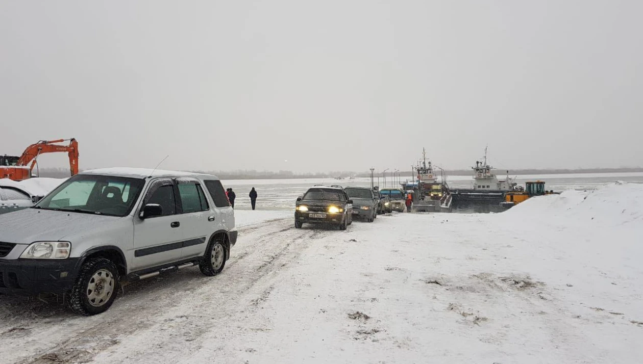 Паромная переправа через обь