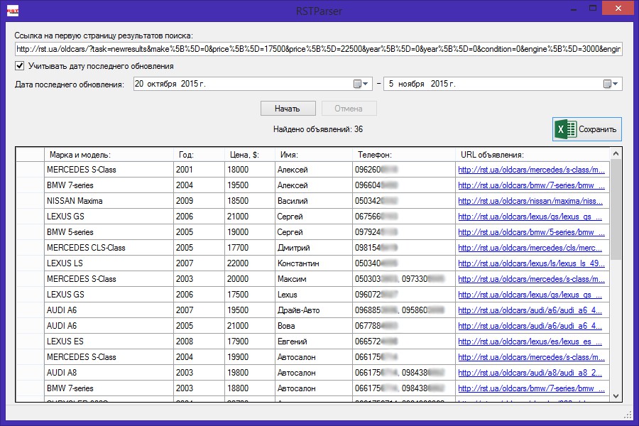 Парсер номеров телефонов