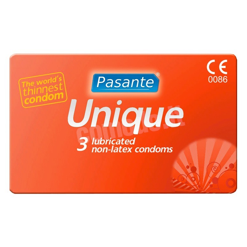[tagline]The world's thinnest, non-latex condoms with a convenient packaging solution.[/tagline] Pasante Unique non-latex condoms are our thinnest condom made from ultra thin synthetic resin AT-10. Unlike latex condoms Unique can be used with oil based lubricants. Parallel, transparent and teat-ended....