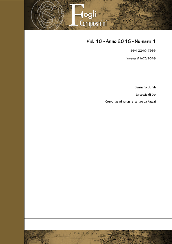 LA CACCIA DI DIO . Divertirsi/convertirsi a partire da Pascal .