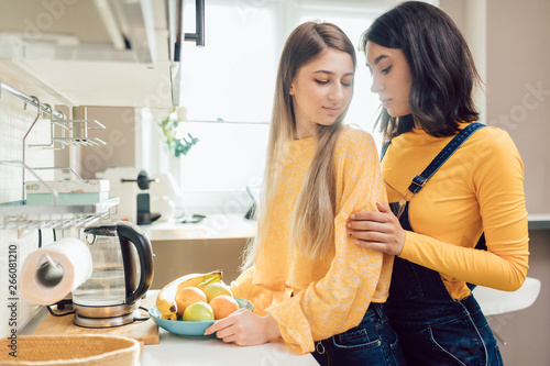Lesbiennes excitées baisent dans la cuisine