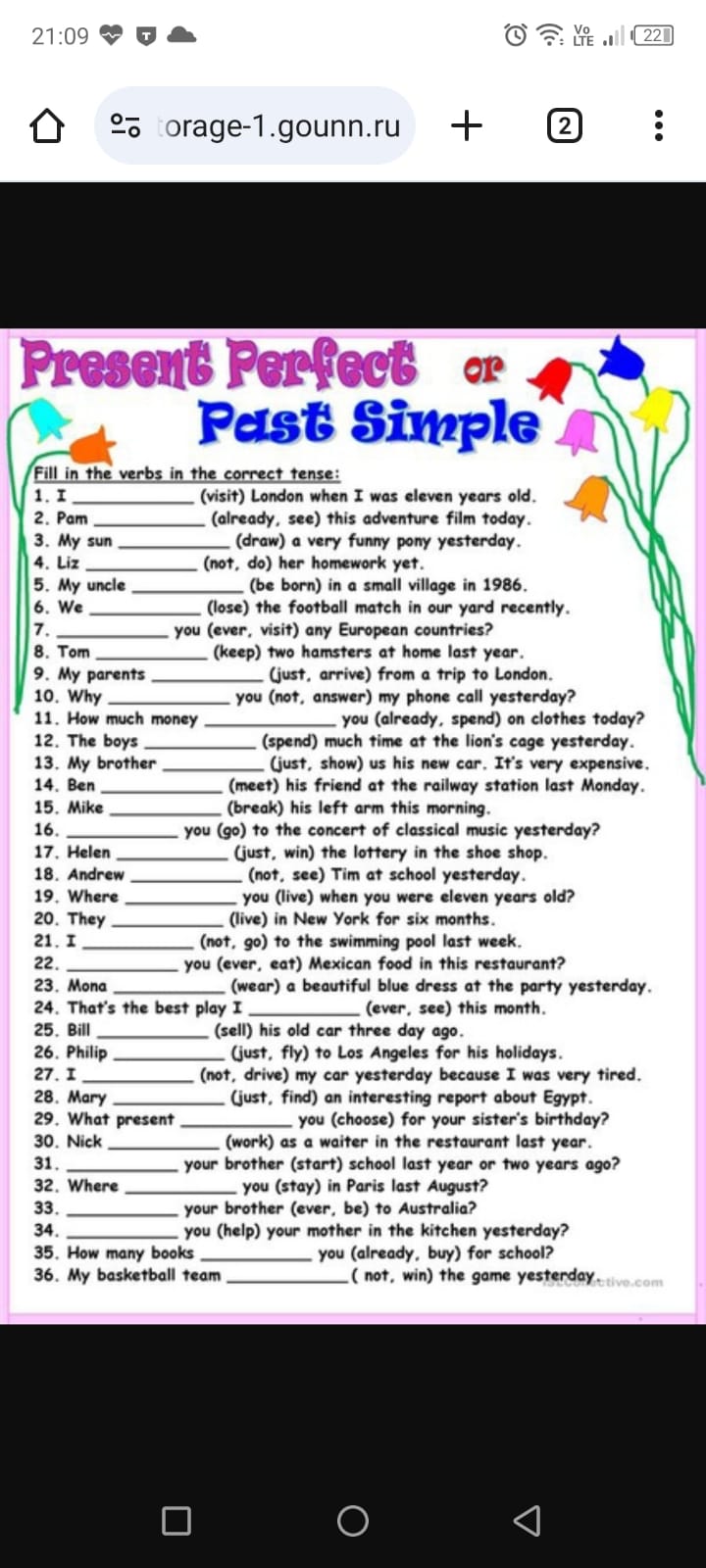 Past simple present perfect exercises 7 класс 87 фотографий