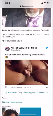 Graphic Sex Tape Allegedly Of Pastor David E . Wilson Cheating On His Wife Has Twitter Torn . Posted October 17, 2019 Written By NewsOne Staff . Posted October 17, 2019 . NewsOne Featured Video . CLOSE . . .