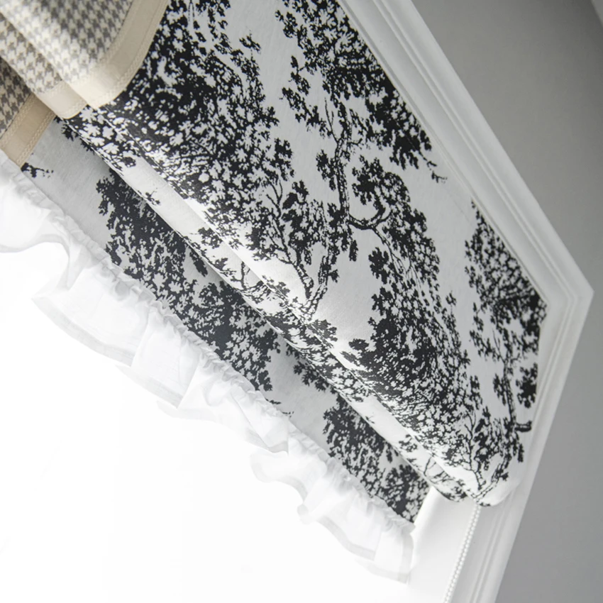 Pastoral Motorized/Cord Ink Tree Grid Stitching Flat Roman Blinds Custom Window Shades Included Hardware Easy To Install - Купить с бесплатной доставкой