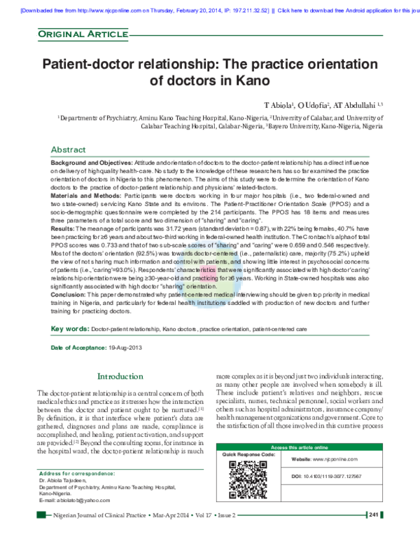 The Doctor-Patient Relationship