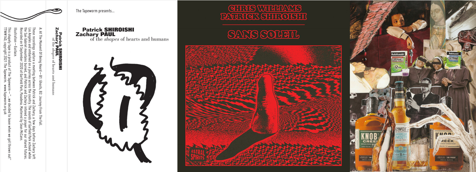 Привычной для Патрика формой записи является музыкальный диалог с другим артистом. Например, одну совместную медитацию, Of The Shapes Of Hearts And Humans, они записали со скрипачом Закари Полом в парке, перед тем как тот двинулся из LA в путешествие по стране. Будто путники останавливаются на привал и разделяют молитву о благополучии своего дальнейшего пути. Другой диалог, более сложный, но менее интенсивный, чем большинство его записей, произошёл у Широиши с Крисом Уиксом на Sans Soleil. Оба музыканта общаются с помощью духовых, Патрик — саксофона и кларнета, а Крис — других медных инструментов. Короткая коллаборация (40oz. of Shame) была у саксофониста и с нойз-артистом Кристианом Ловерсом. Экспрессивно и сложнослушаемо.