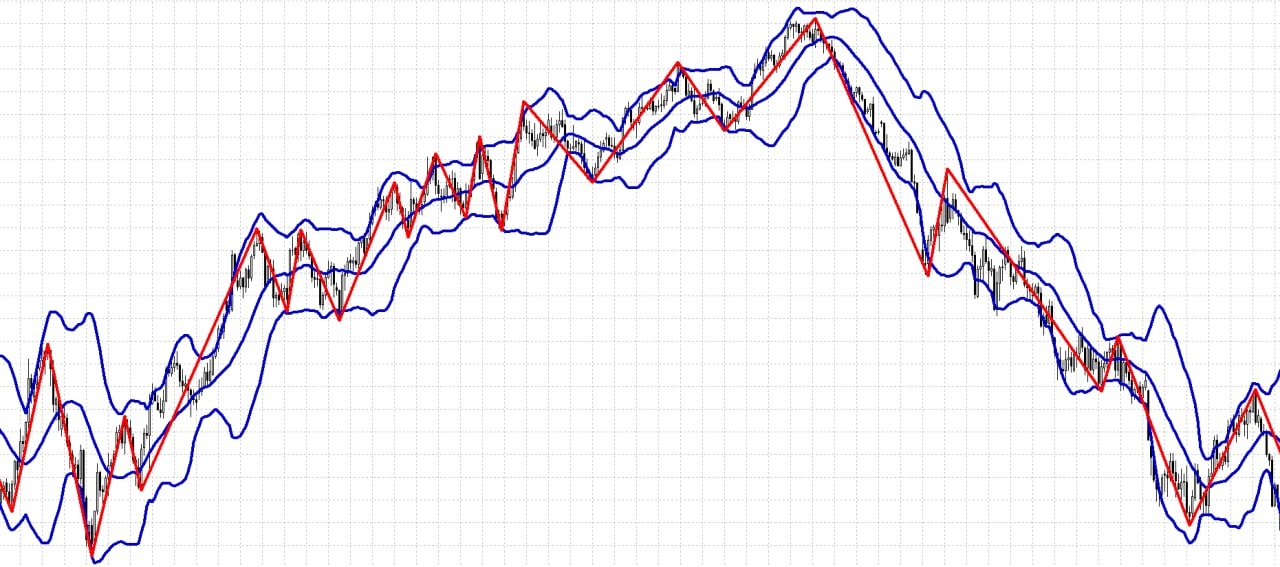 Индикатор ZigZag очень неплохо работает вместе с таким канальным индикатором, как Bollinger Bands.