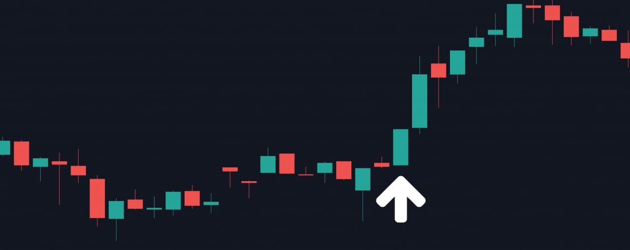 Бычья полная свеча Марубозу на часовом графике Bitcoin, указывающая на то, что торговый час начался с самой низкой точки и закончился на самой высокой точке.