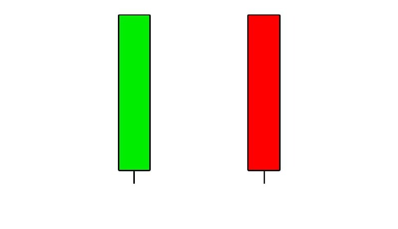 Полная свеча Марубозу имеет как открытую, так и закрывающуюся плоскую поверхность, при этом на всей подсвечнике нет фитилей. Это указывает на то, что криптовалюта, такая как Биткоин, или актив начали период времени, двигаясь в определенном направлении, и продолжали двигаться в этом направлении до самого конца периода времени. Например, акция могла открыть торговую сессию, поднявшись в цене, а затем закрыть сессию без малейшего отката.