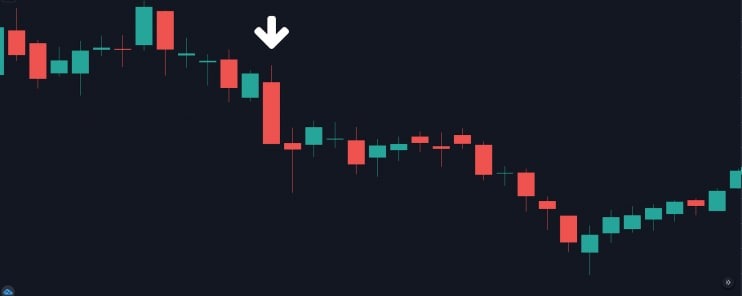 Медвежье закрытие Марубозу на дневном графике Bitcoin, указывающее на то, что цена закрыла сессию на самом низком уровне.