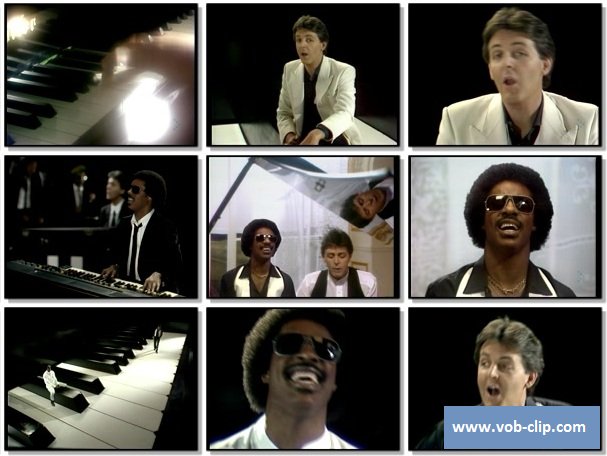 A duet between Paul McCartney and Stevie Wonder, this is a song about racial harmony, using piano keys as a metaphor . The black keys on a piano are ebony , and the white ones are ivory - the song asks why we all can't lie together in perfect harmony like the keys . >>