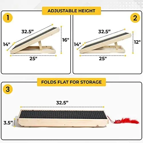 "Paw - Natural Wood Cat Scratching Post Ramp - Cat Incline Scratching Board & Scratch Pad - No Assembly Required - Adjustable Gar" * Buy Now With Free Shipping Just For $116