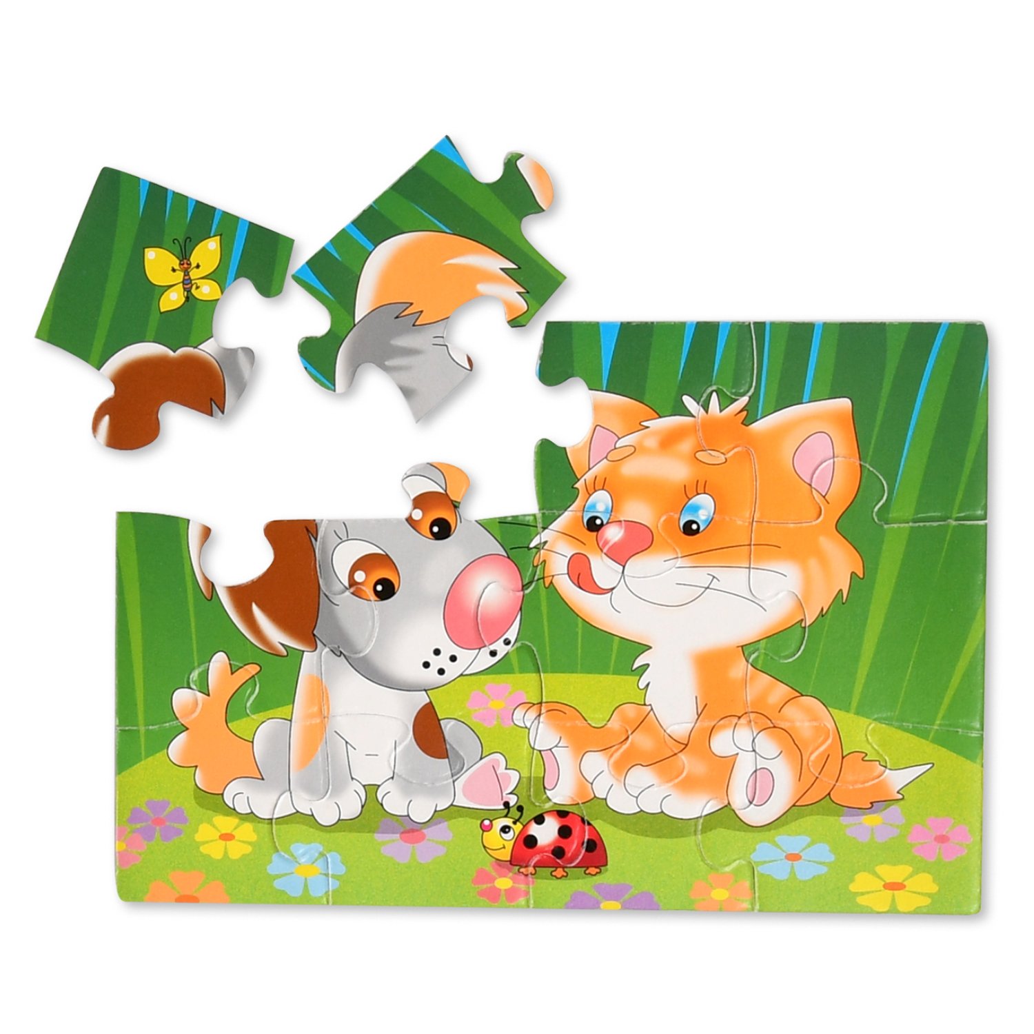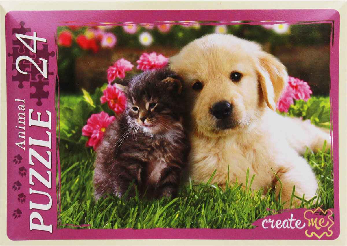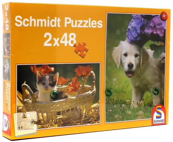 Пазлы котенок и щенок