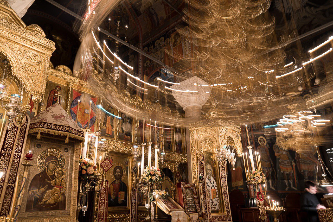 Ну интереснее всего мне было услышать вживую византийское пение, потому что до этого я мог его слышать только на дисковых записях или в интернете. А насчет хода богослужений я уже примерно представлял, чего ожидать. Я знал что на службах раскачивается хорос и паникадила, что кадят ручным кадилом, которое называется кацея. Я знал, что здесь устав близкий к Святогорскому.