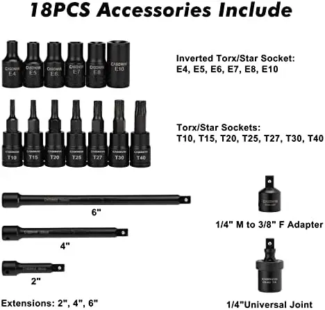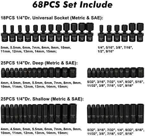 "Pcs 3/8" Drive Socket Set, SAE&Metric Standard,Deep,Swivel Sockets,Cr-MO Steel, Includes Star and Inverted Star Socket" * Buy Now With Free Shipping Just For $81