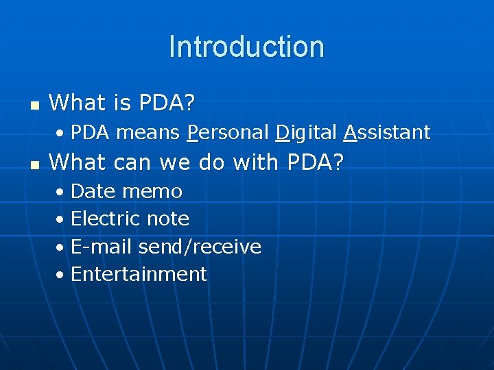 First, let's address the definition: a PDA , or public display of affection, is the term used to describe any form of physical contact between couples in a public setting . It includes everything from kissing and cuddling to holding hands or exchanging light touches . What does PDA mean?