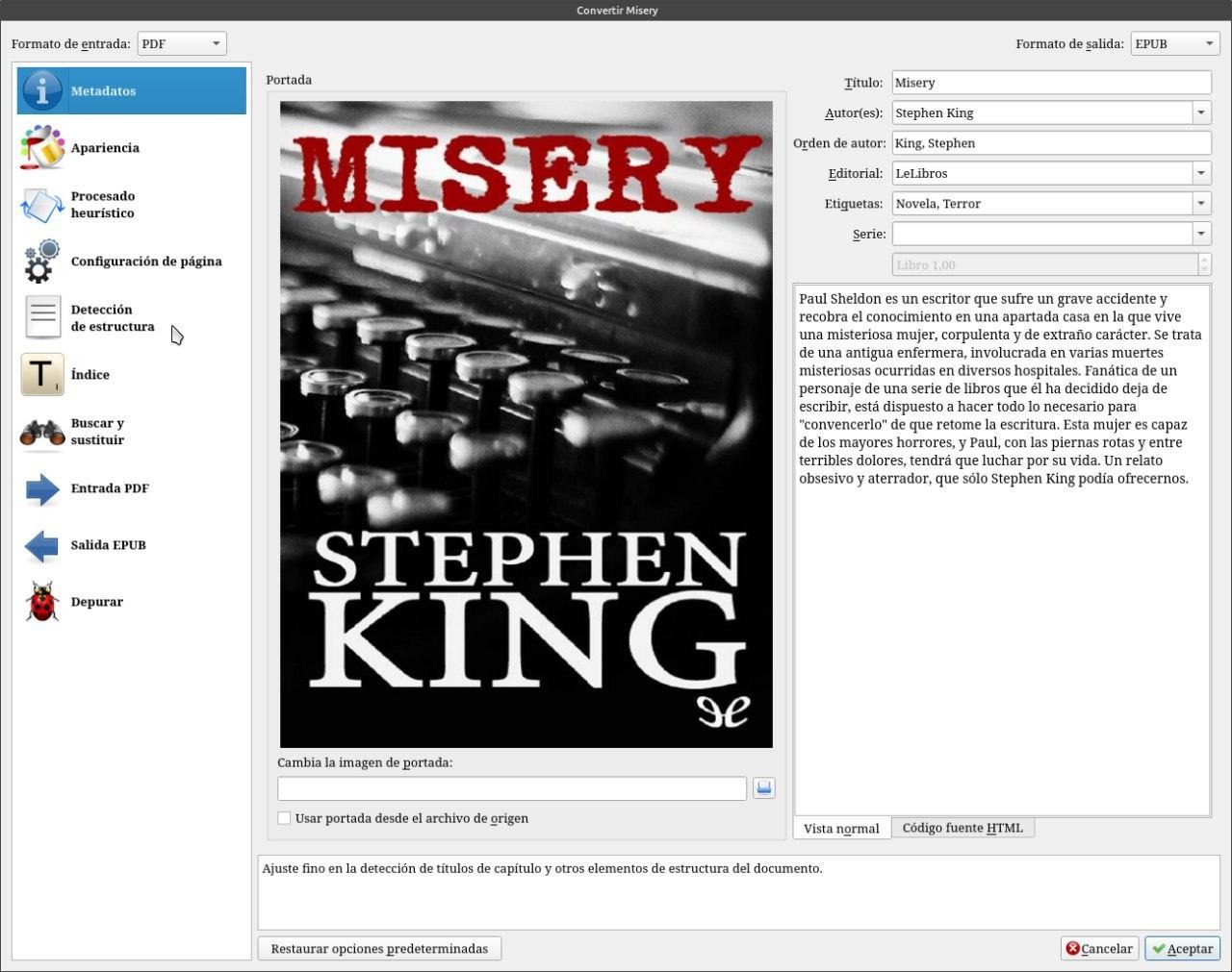 WalterA veces me comentan que cuando convierten un pdf a epub, con Calibre el libro se les ve mal en su lector. Mi respuesta es configuraste la conversión del libro de acuerdo a tu lector ??? Esto se hace tocando convertir libro. En la columna de la izquierda existen varias solapas a tener en cuenta para configuraciones finas.