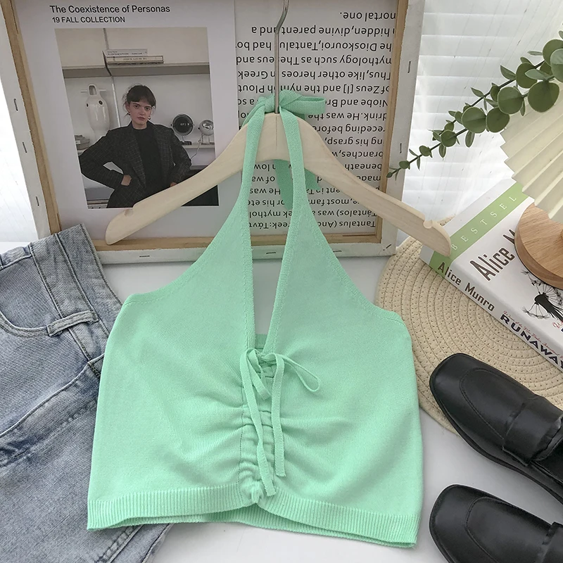 «Pearl Diary Women Knitting Sexy Crop Tops Summer Ruched Front V Neck Tie Back Short Tops Backless Going Out Solid Color Tops» по лучшей цене на рынке! Всего за 10$ (950рублей)