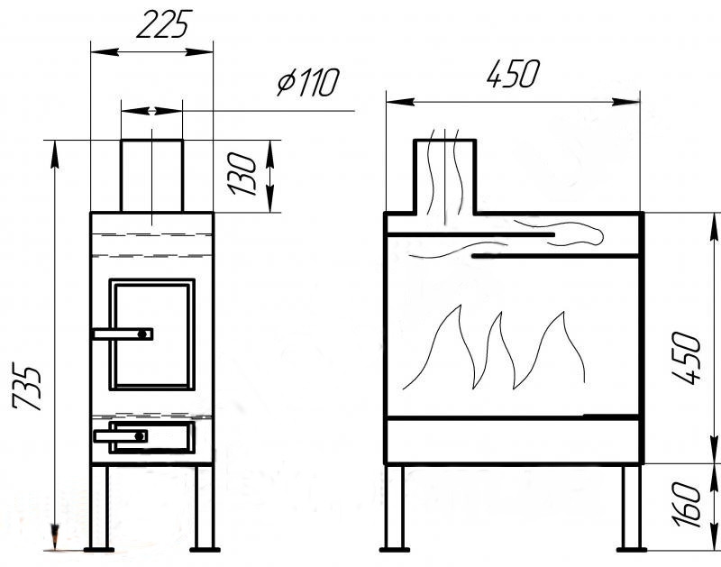 Печь буржуйка размеры